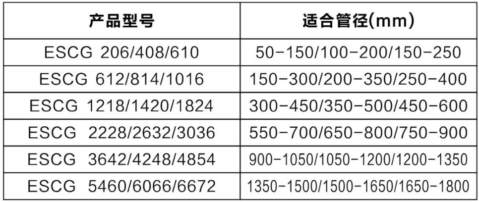 ESCG 612,針對(duì)管外徑150mm-300mm