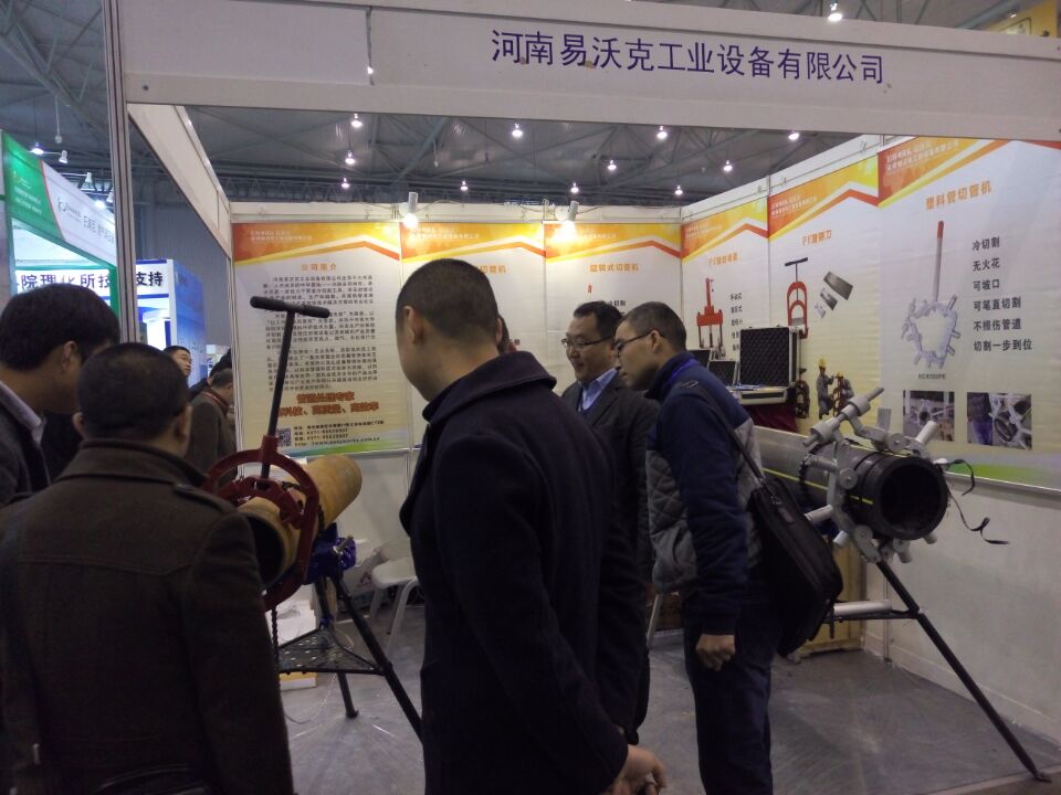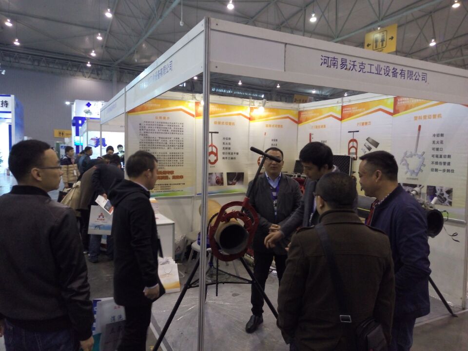 河南易沃克工業(yè)設備有限公司展位面前人頭攢動,異?;鸨?。對我司自主研發(fā)的管道冷切割工具喜愛有加。工作人員向在場人員講解展示鋼管和pe管冷切割工具。以及pe刮皮刀,管道帶壓封堵器。參觀人員交口稱贊。