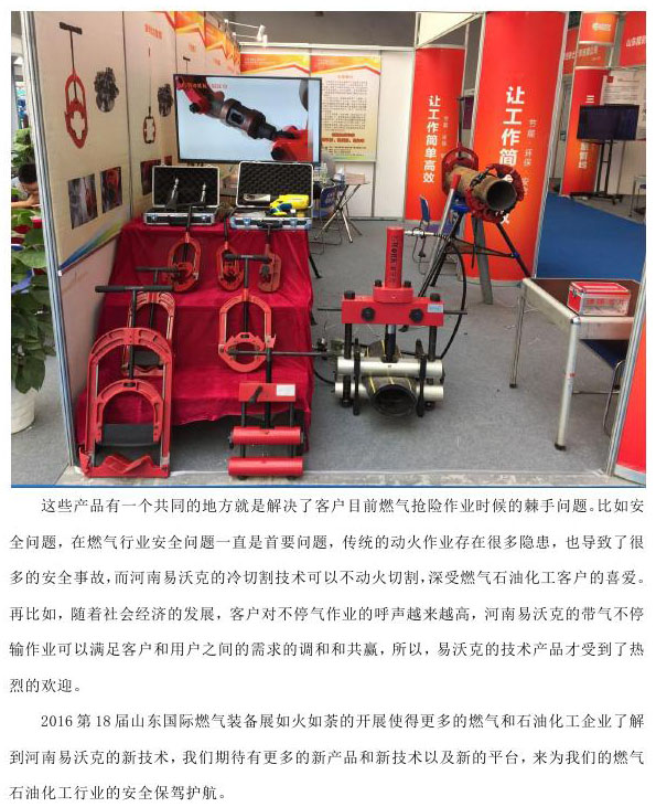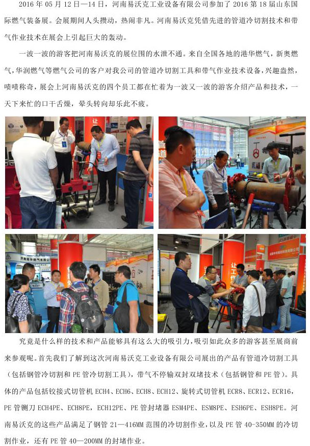 我司參加2016第18屆山東國際燃?xì)庋b備展冷切割和帶氣作業(yè)技術(shù)引轟動