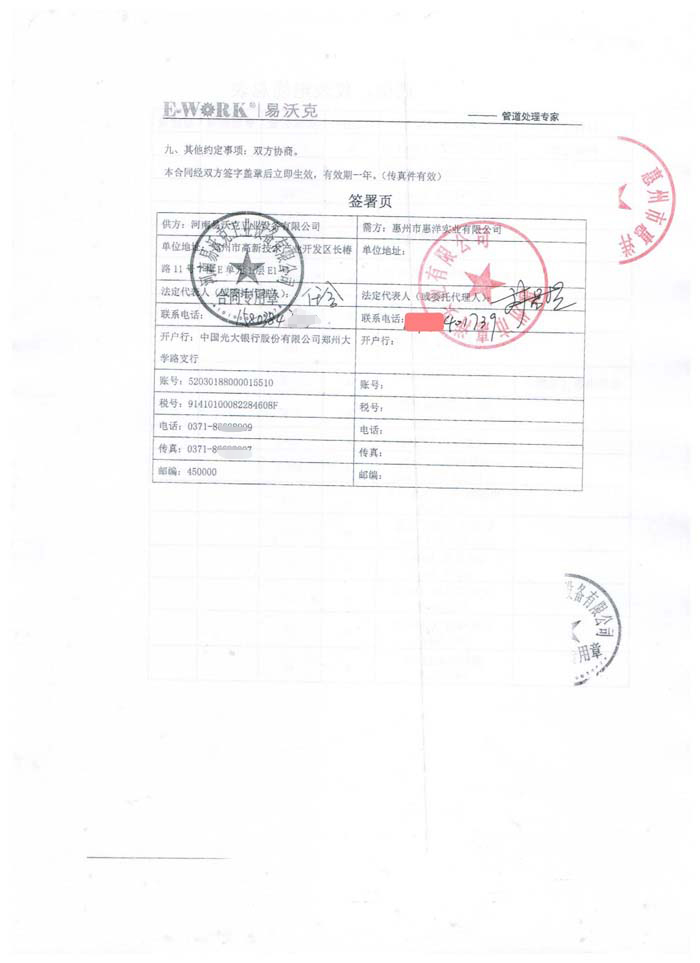2016年惠州市惠洋實業(yè)有限公司合作業(yè)績