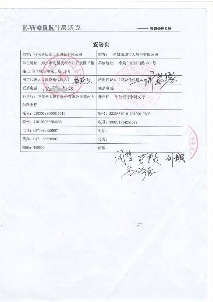 2015年浙江余姚市城市天然氣有限公司合作業(yè)績