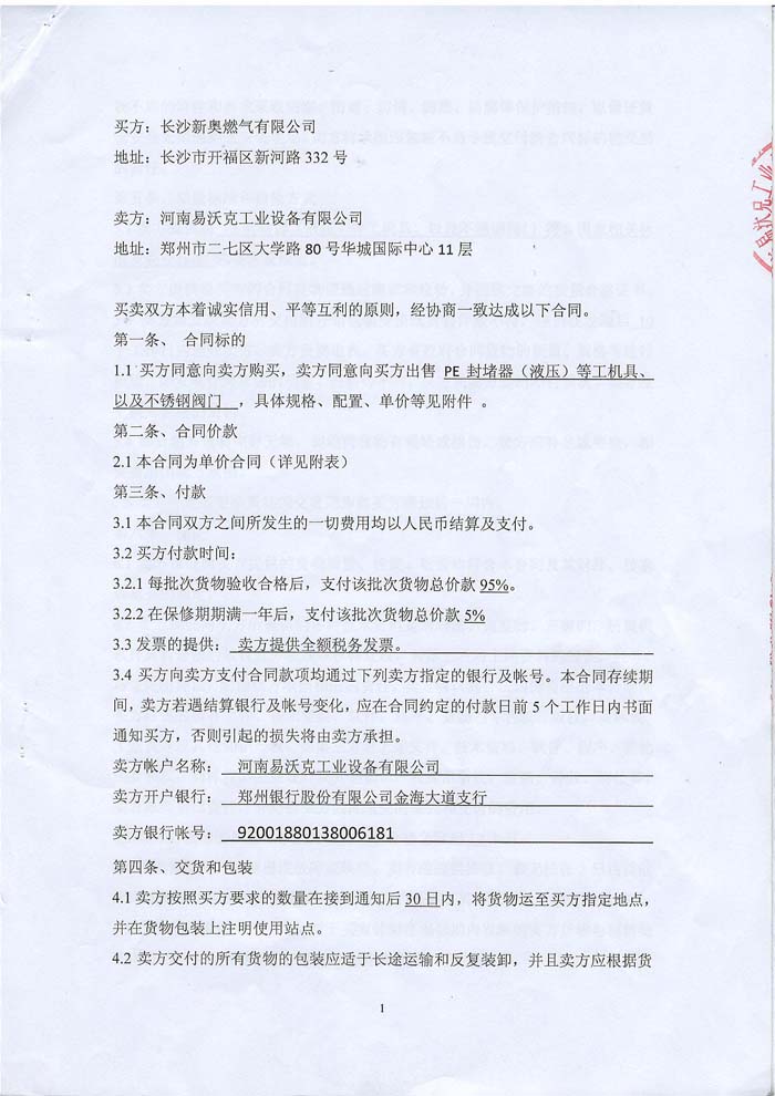 2014年湖南長沙新奧燃氣有限公司合作業(yè)績